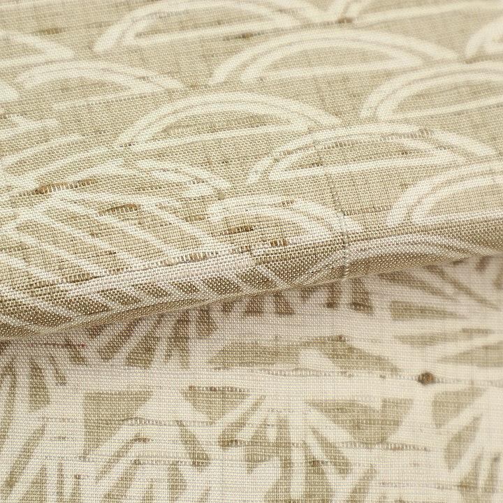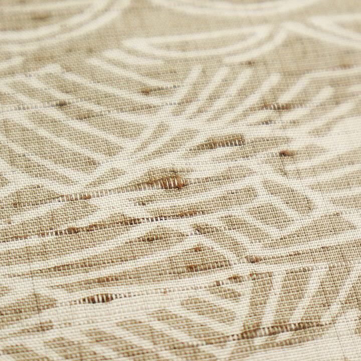 ぜんまいがふんだんに織り込まれた絹布には『ロウケツ染』によって丁寧に染め成されたお洒落なモチーフ。