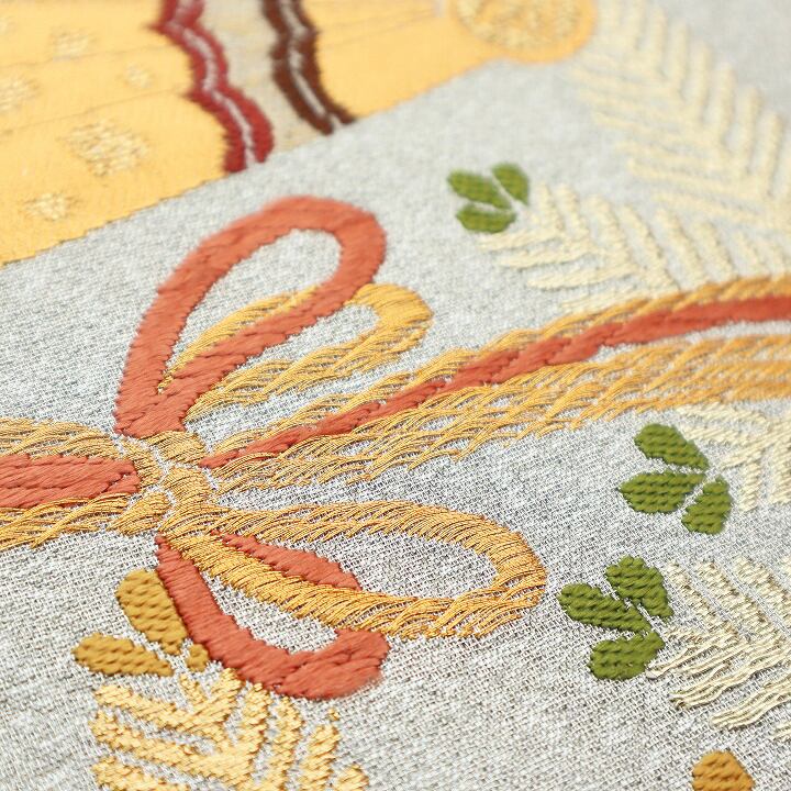 こちらの作品は、有職文様『松文』や、さらに印象的な『扇面文様』と、正に吉祥文様尽くし。