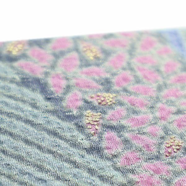 帯地には銀糸が織り込まれ、こちらのお品をさらに高級感に満ちた、華やかな作品に仕上げています。