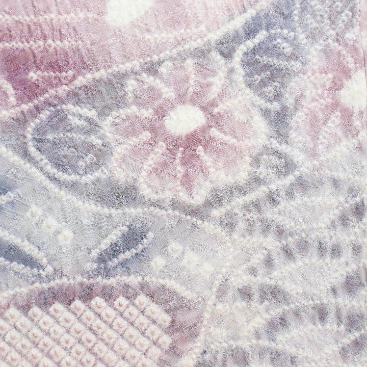 お着物全体のお柄の一つ一つを手で絞る作業は、私たちの想像を遥かに超える、途方もない手間暇が掛けられたことでしょう。