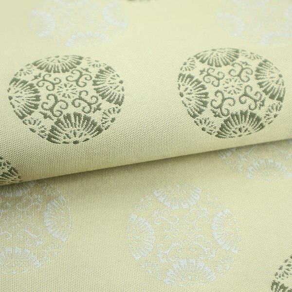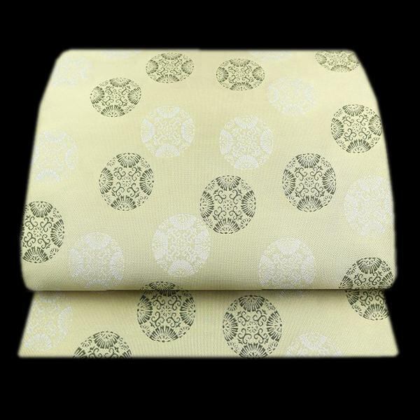 爽やかな光沢を湛えた帯地に、有職文様の中でも大人気のモチーフ『浮線綾』を細やかに織り成して。