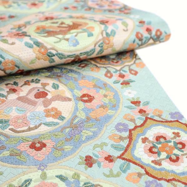 希少な絽刺しの中でも、こちらの帯は爽やかな水色を基調とした、とってもステキな特選の袋帯のご紹介です。