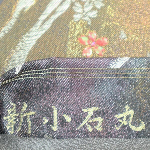 最高級の生糸【新小石丸】 上品に煌めく【螺鈿】 ~三日月に桜~ 新品の袋帯 〈銀座 一凛〉