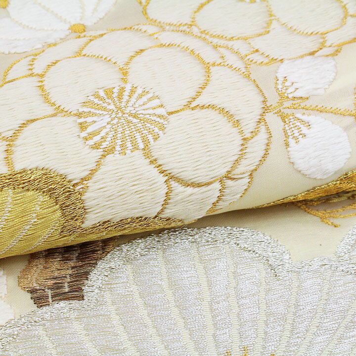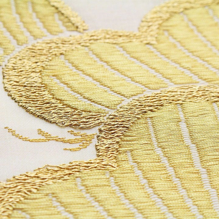 上品な煌めきを放つ【プラチナ糸・本金糸】をふんだんに用いることによって、フォーマルなシーンに相応しい晴れやかな仕上がりとなっています。