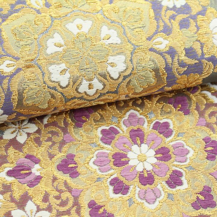 高貴な貝紫が艶やかな帯地に美しく映え、上品に煌めく金糸とのハーモニーを奏でて。