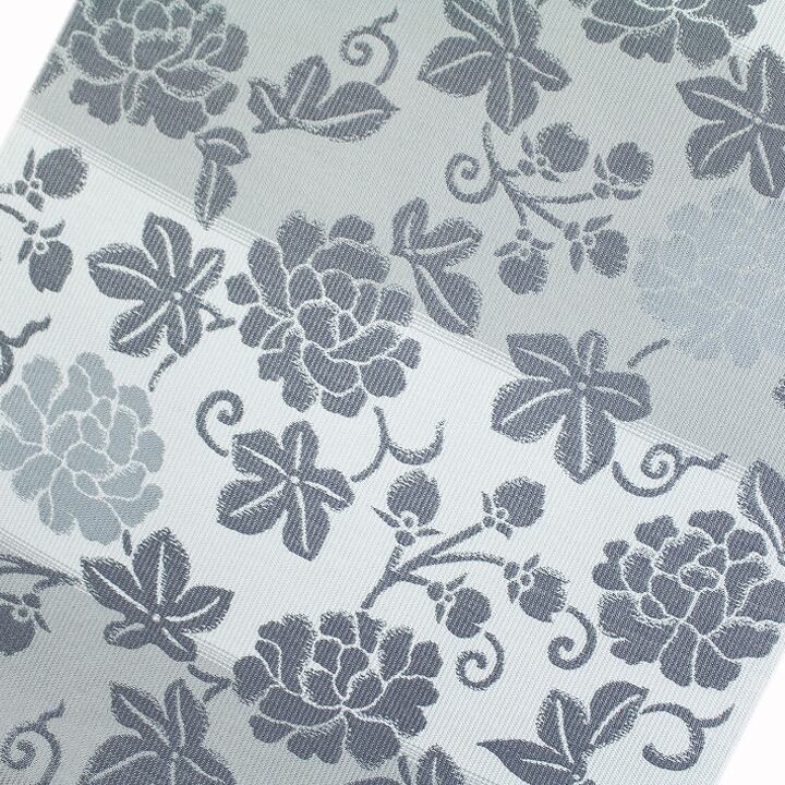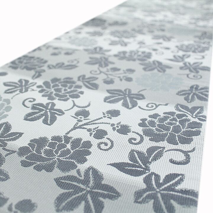 合わせるお着物や小物を選ぶことのない、上品に艶めくライトグレーの帯地。