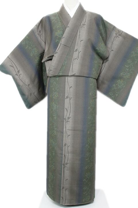 着姿をスッキリと見せてくれる縦の縞と、細やかな亀甲文様の織り成された、とってもラグジュアリーな仕上がりとなっています。