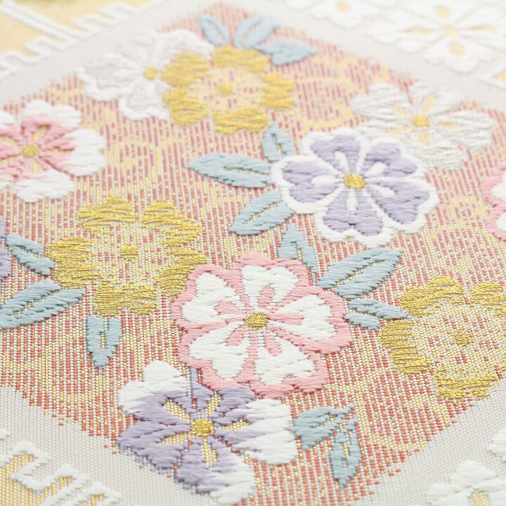 優しい彩りの色糸をふんだんに用い、またふっくらとした唐織によって上品さをも添えている最高級の袋帯です。