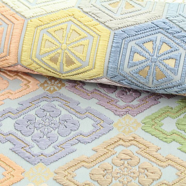 白を基調とした、艶やかな帯地。