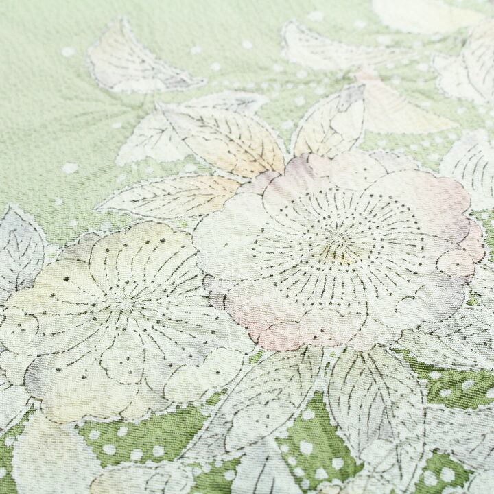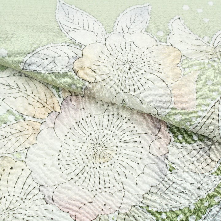 爽やかな印象を与えるお色目に染め成された、上質な紋意匠ちりめん。
