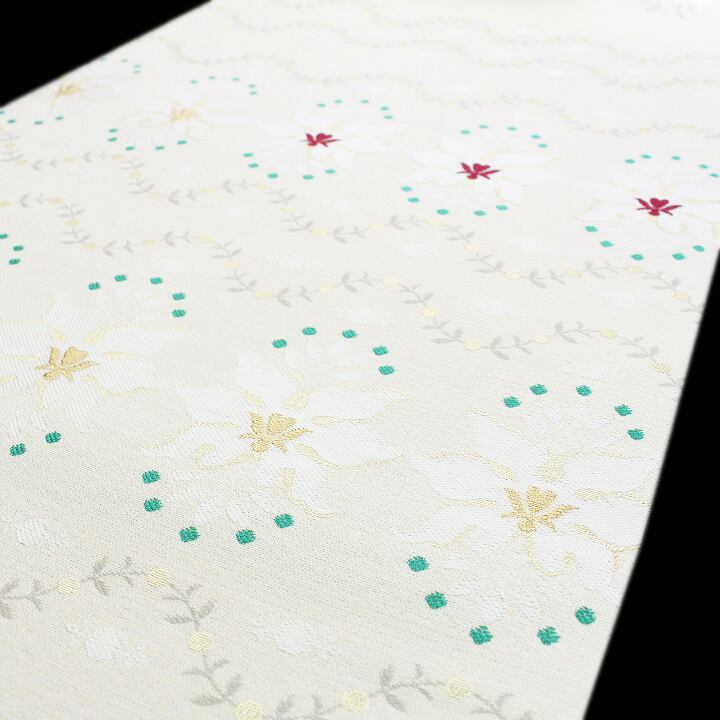 和の装いに求められる『上品な華やぎ』を一本の帯にしたかのような、とってもステキな仕上がりとなっています。