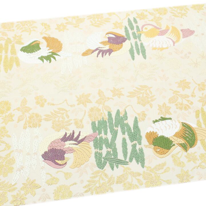 そこには、上品に煌めく金・銀糸と、愛らしい鴛鴦が美しく映えています。