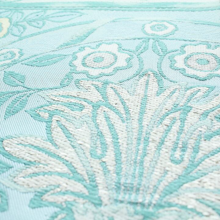 フォーマル帯では貴重な『ブルー』が美しく映える、印象的な逸品。