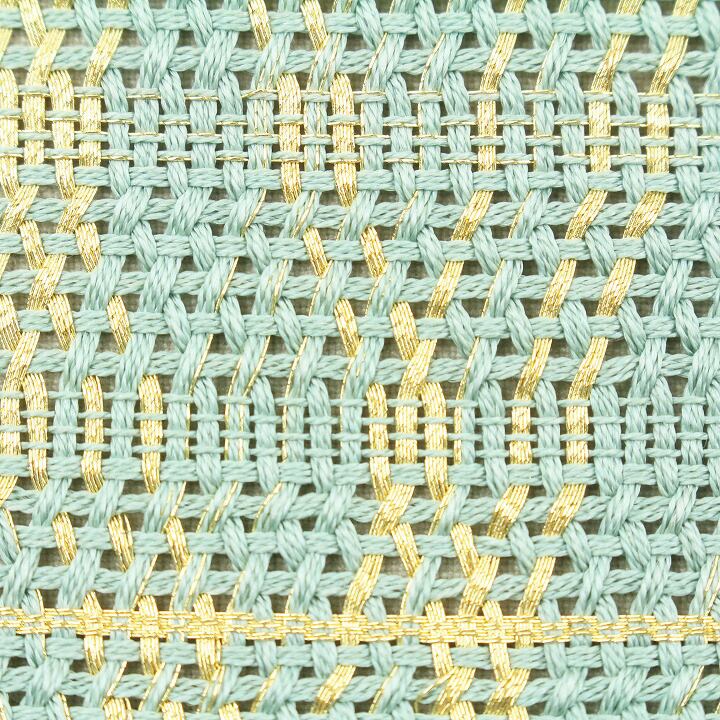 こちらのひなや帯の特徴と致しましては、とても柔らかく『手組み』によって織り成されているところです。
