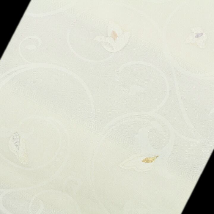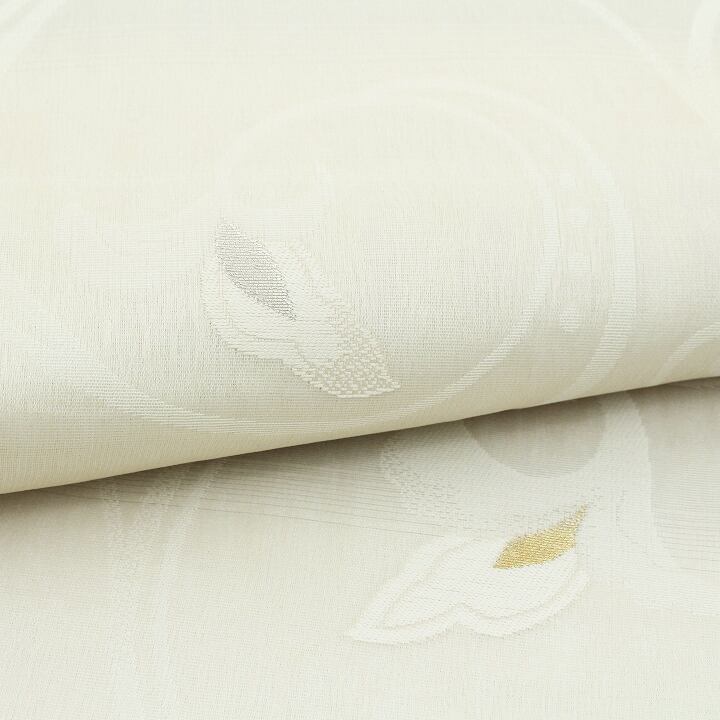 大人気色【エクリュ】に彩られた帯地には、大人気モチーフ【唐花文】をあしらわれた、とってもエレガントな仕上がりとなっています。