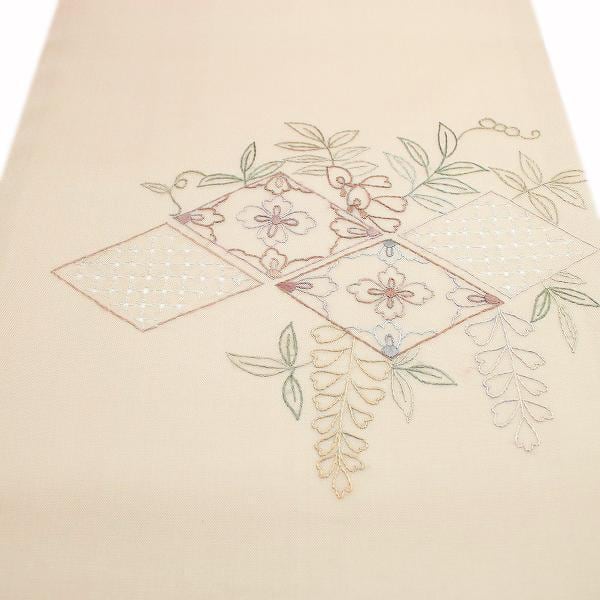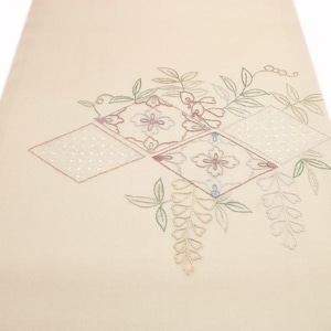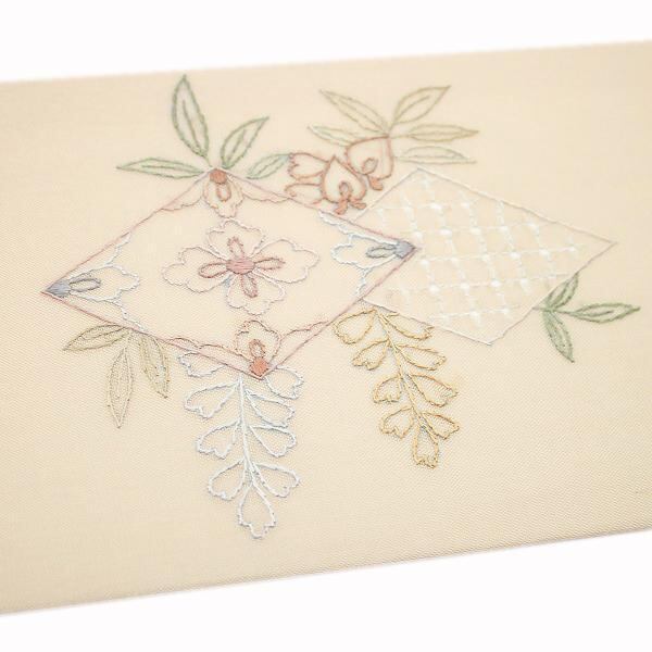 美しい手刺繍に加え、いつまでも触れていたくなるほどに上質な風合い、さらに軽やかなお締め心地は、紗や絽の色無地や小紋、紬にはもちろん、単衣のお着物との相性も抜群。